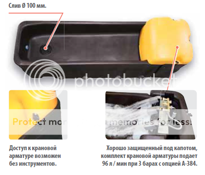 - Большой бак с техническим отсеком и двойной крановой арматурой.