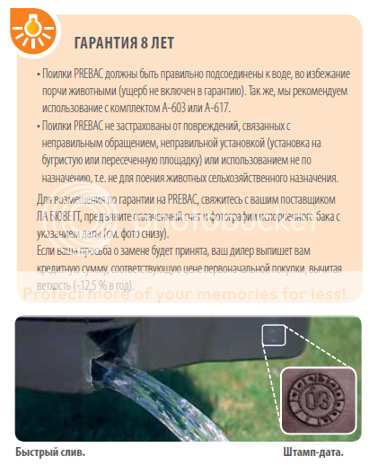 - Гарантия на резервуары PREBAC: 8 лет от производственного брака.
